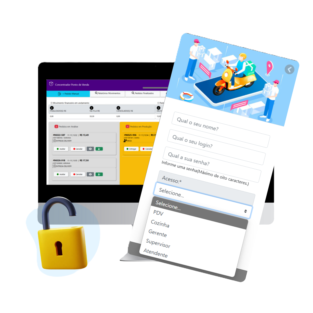 Cadastre seus funcionários e compartilhe o acesso ao gerenciador de pedidos de acordo com a necessidade de cada um, garantindo maior segurança aos dados.